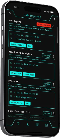 A private, local AI wellness and health monitoring app. Every heartbeat, step, activity, body signal, medical record and personal information is stored and analyzed securely directly by on-device intelligence.